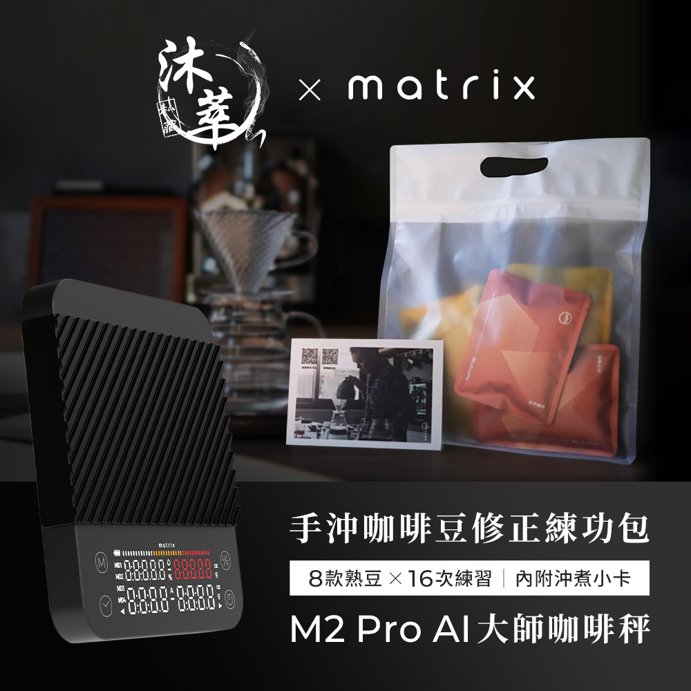 Matrix x沐萃咖啡 M2 PRO AI大師咖啡電子秤-黑+沐萃手沖咖啡豆修正練功包(8款風味共16入)