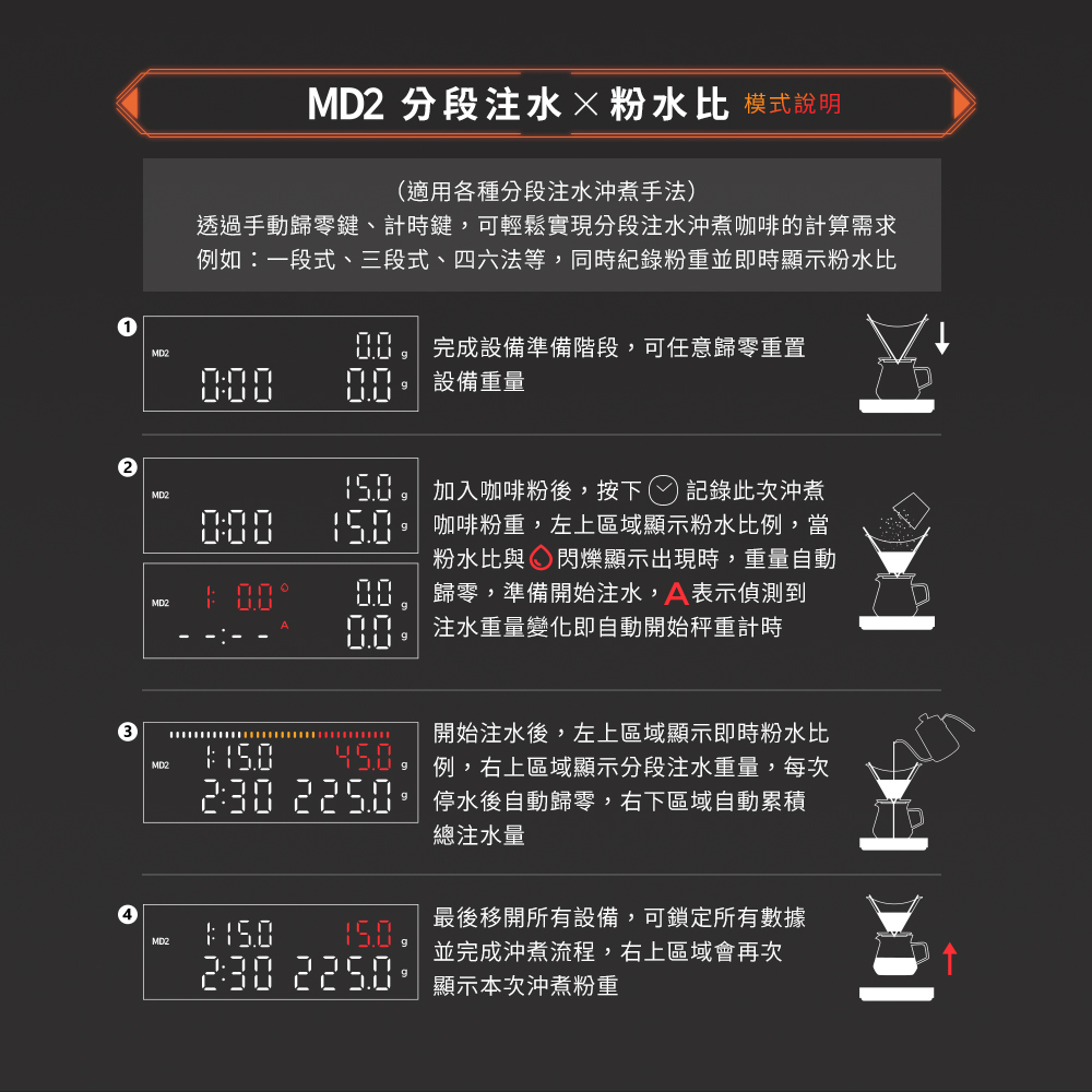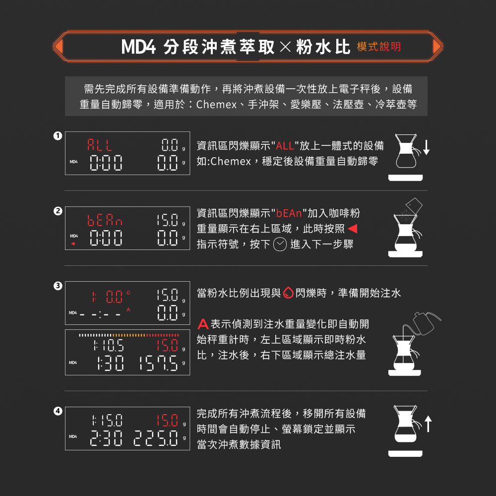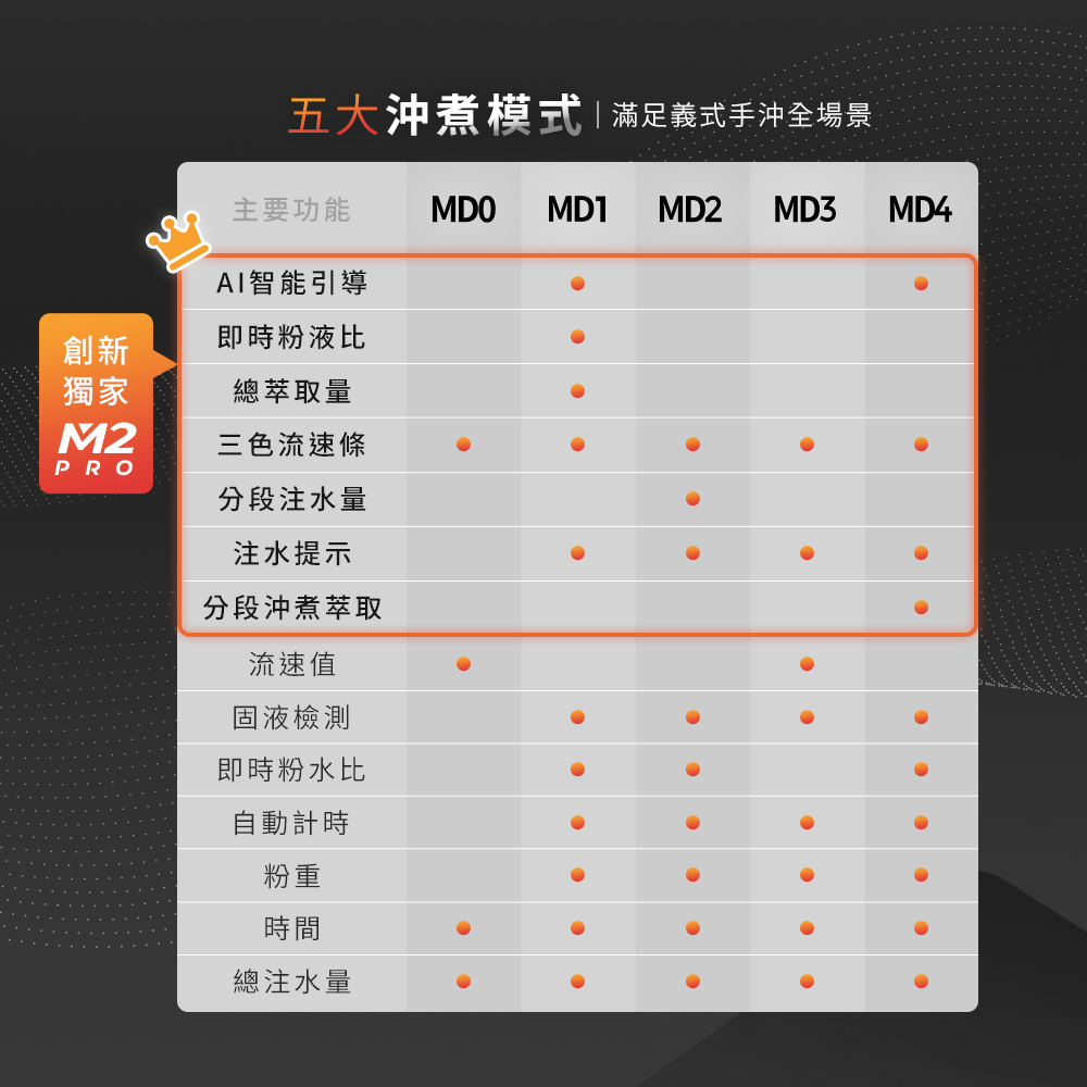 工作模式:基礎模式|萃取量+粉液比|分段注水+粉水比|義式機 |分段萃取+粉水比