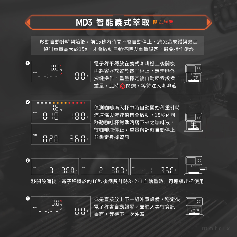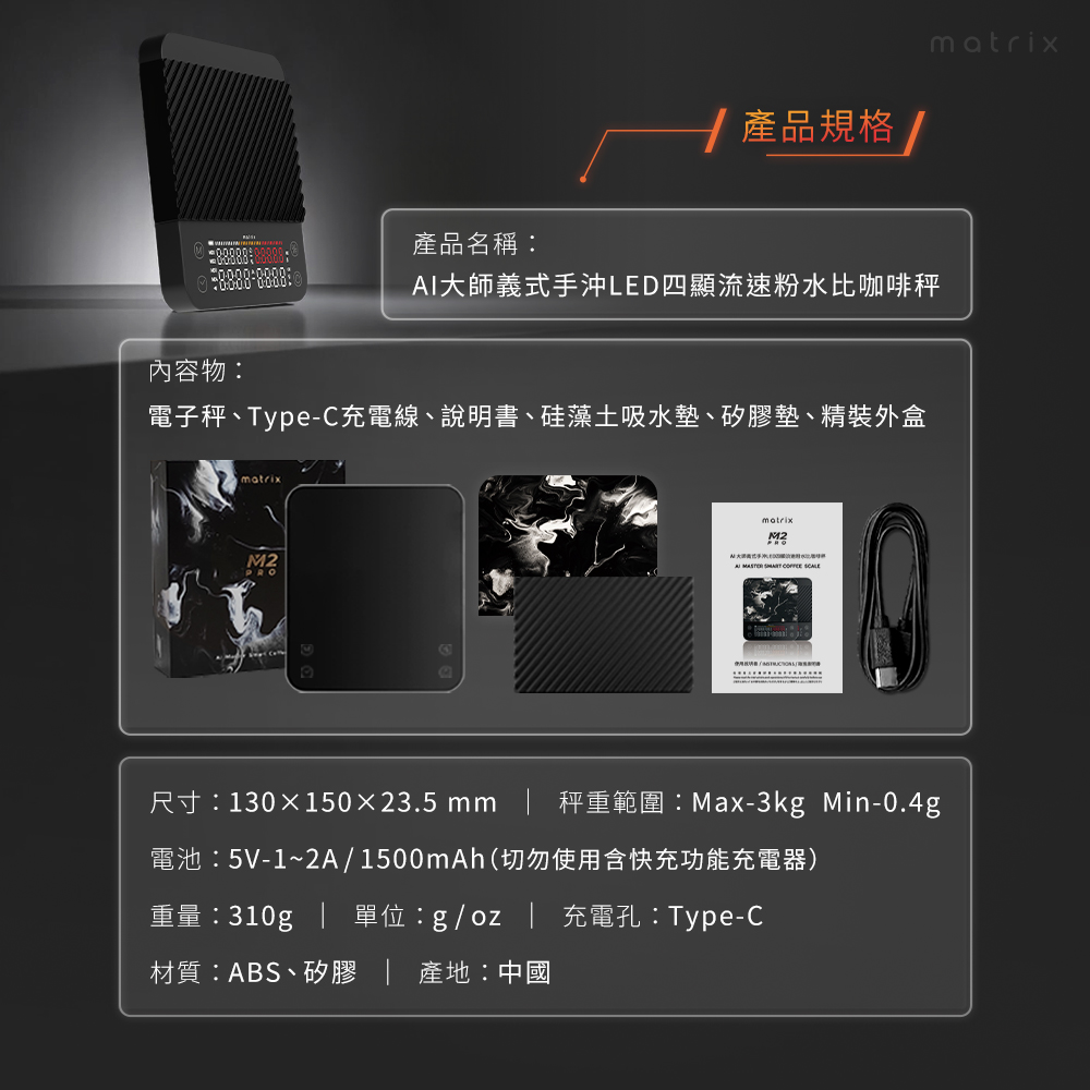 品名:【Matrix】x【沐萃咖啡】M2 PRO AI大師咖啡電子秤-黑+沐萃手沖咖啡豆修正練功包(8款風味共16入)